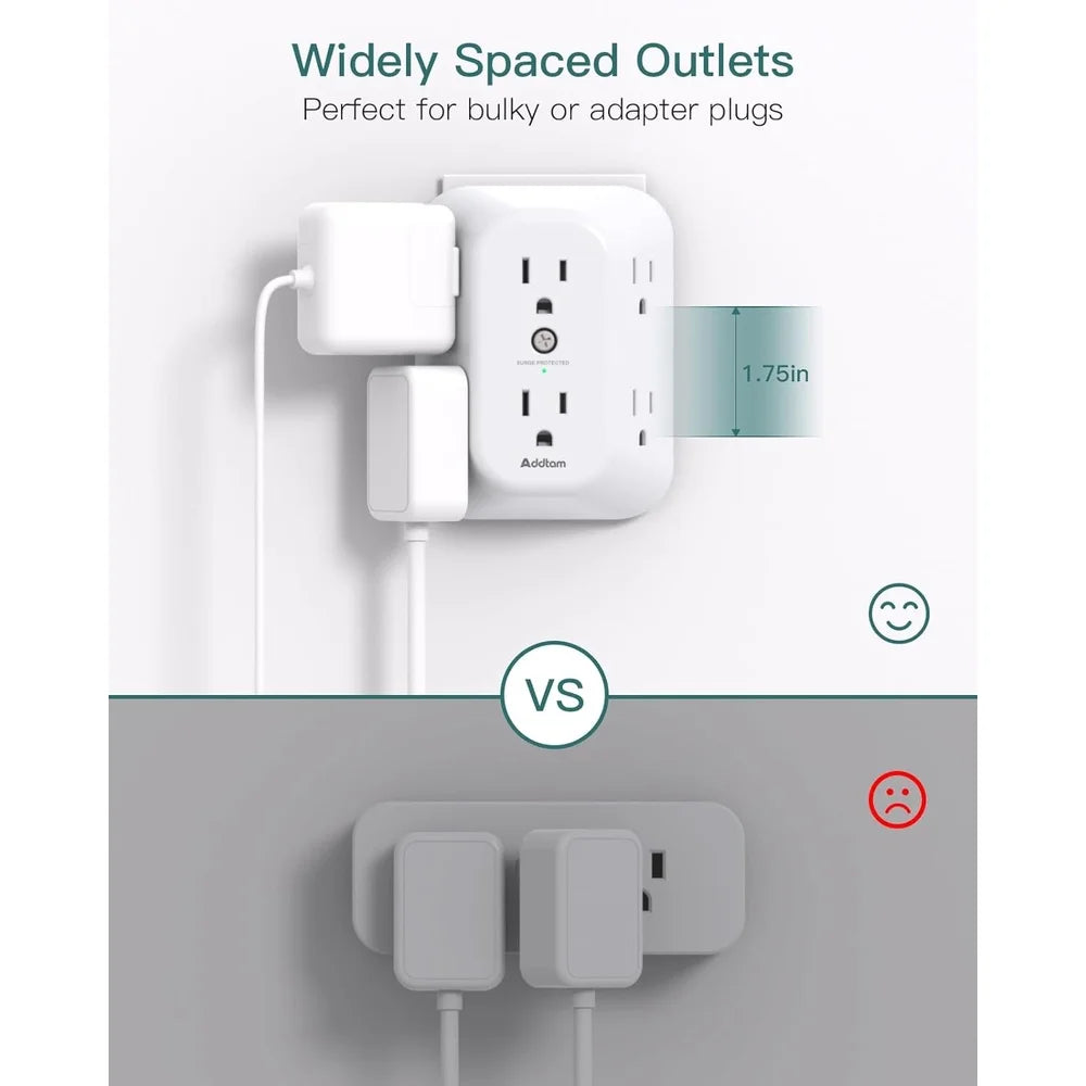 2 Pack 6 Outlet Surge Protector Wall Extender Power Splitter