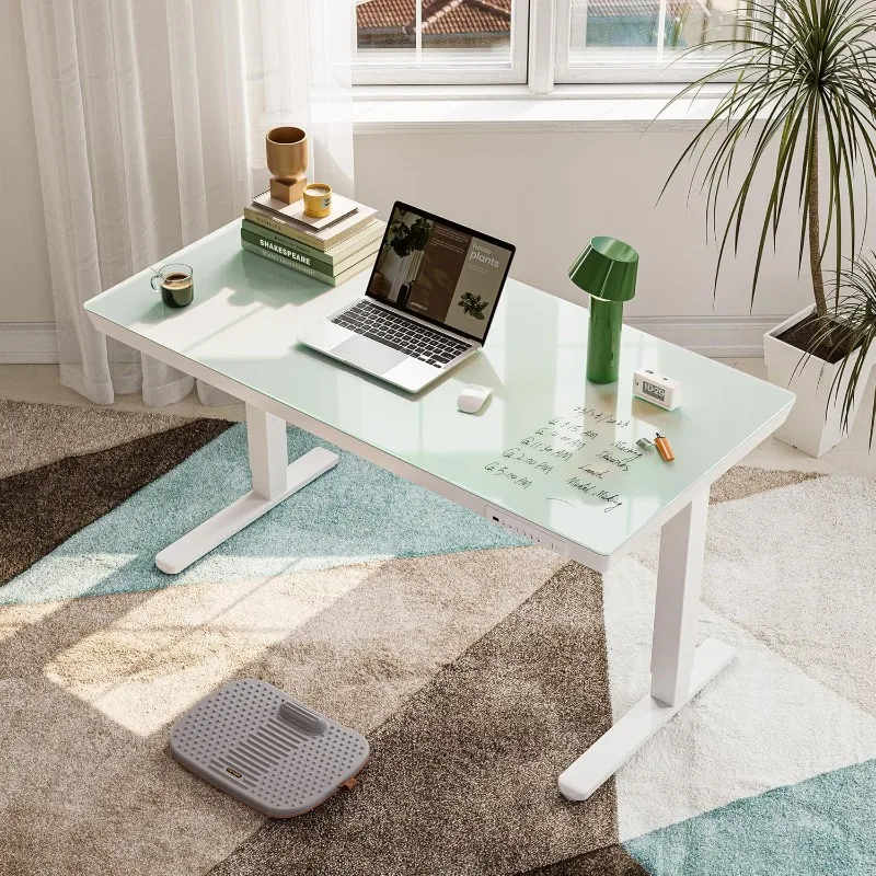Whole-Piece Glasstop: The 55*24 whole piece glasstop standing desk provides stylish and comfortable workspace. The wear-resistant glasstop can be used as a writing board to record your whims and also easier to clean