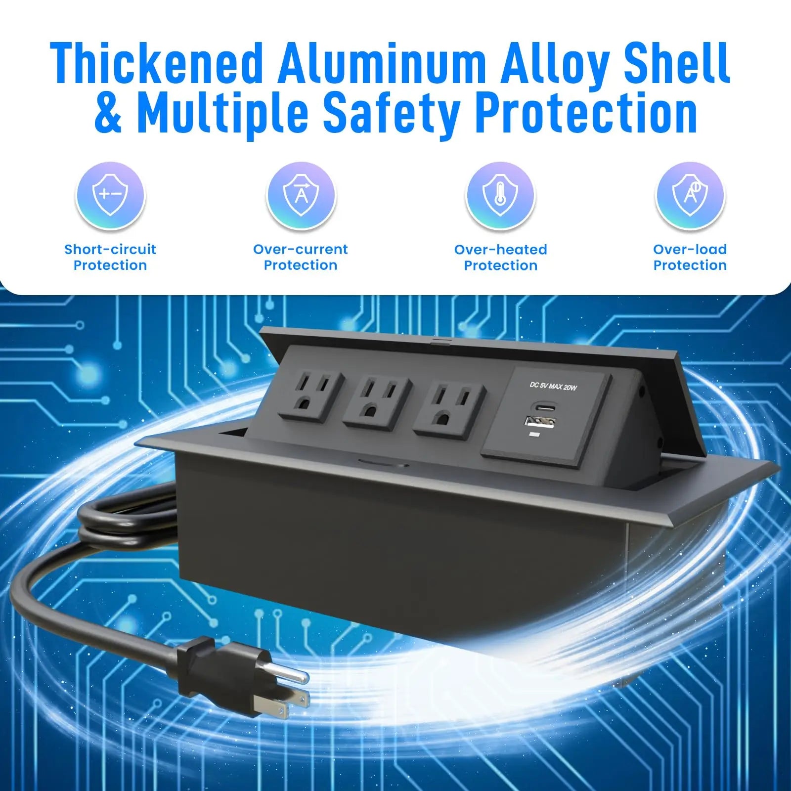 Discover the ultimate convenience for your conference room with our Conference Table Power Outlet. This innovative pop-up hub features PD20W Type-C fast charging, ensuring your devices power up quickly and efficiently. Designed for seamless integration, it includes 3 AC outlets and a USB port for versatile connectivity.