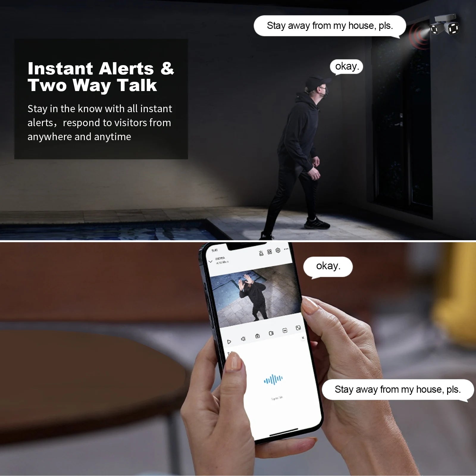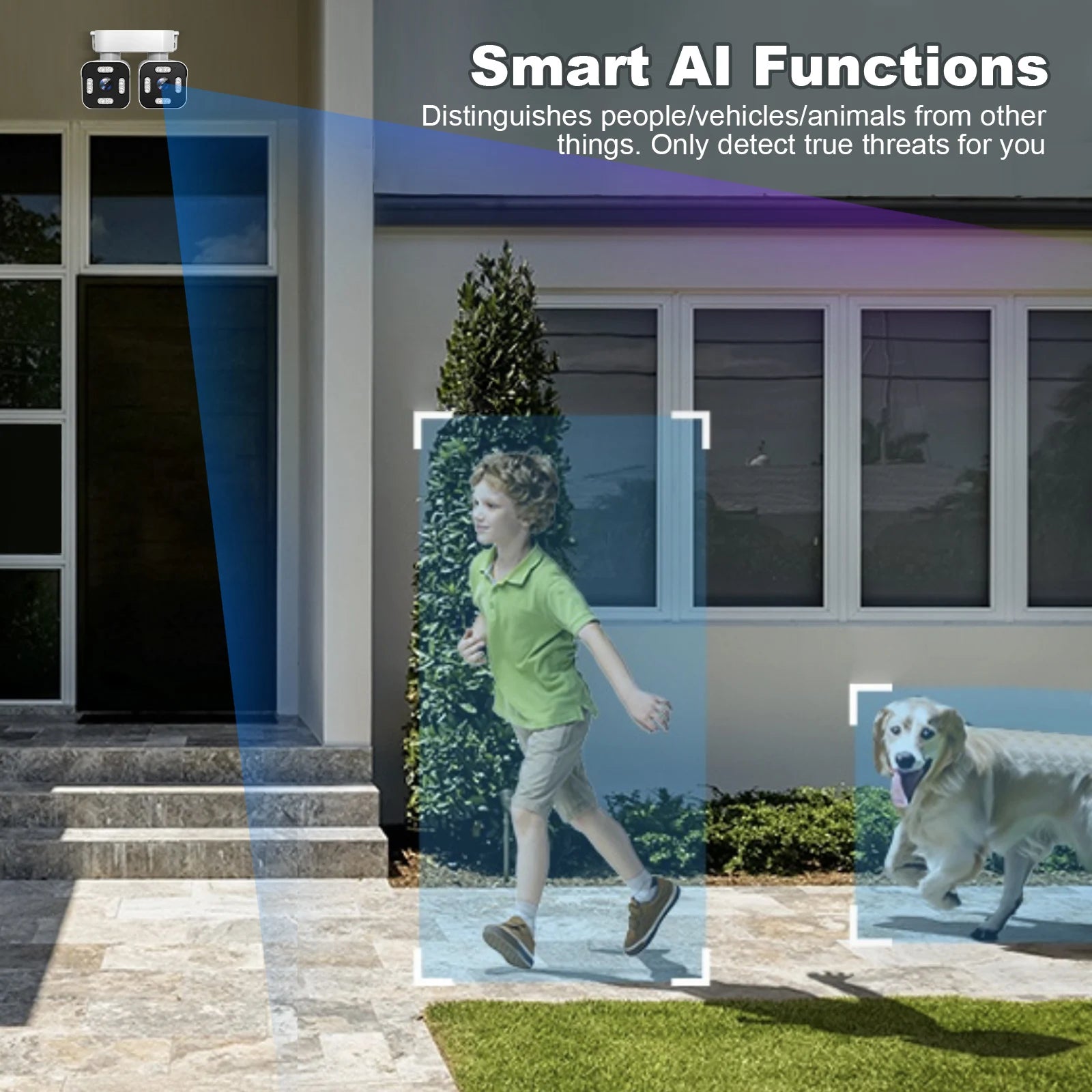 - Dual lens PTZ with 8x digital zoom gives you wide-area surveillance and tight detail in a single camera, perfect for entrances, yards, and hallways.