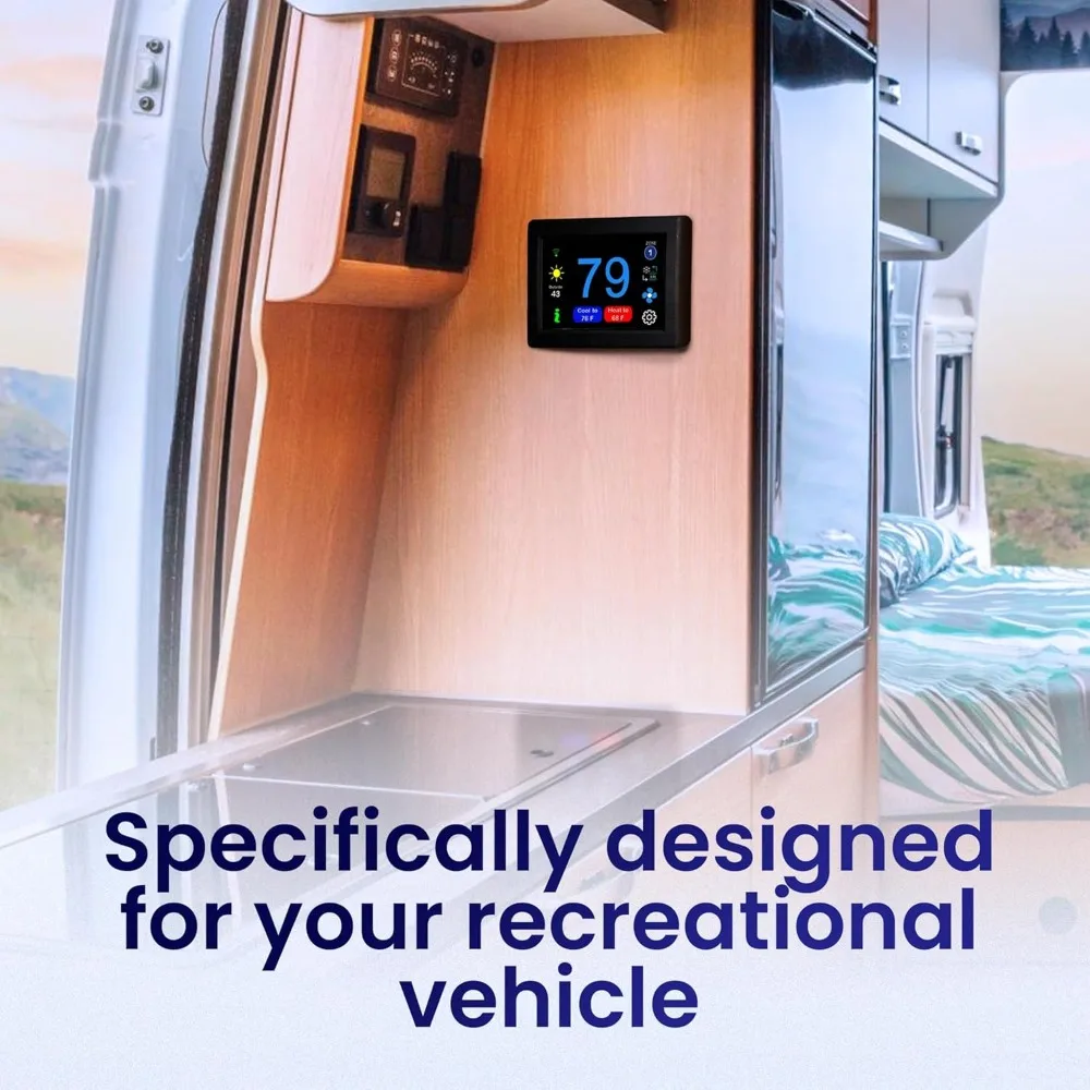 - Clear, modern display — easy-to-read interface that complements any RV interior.