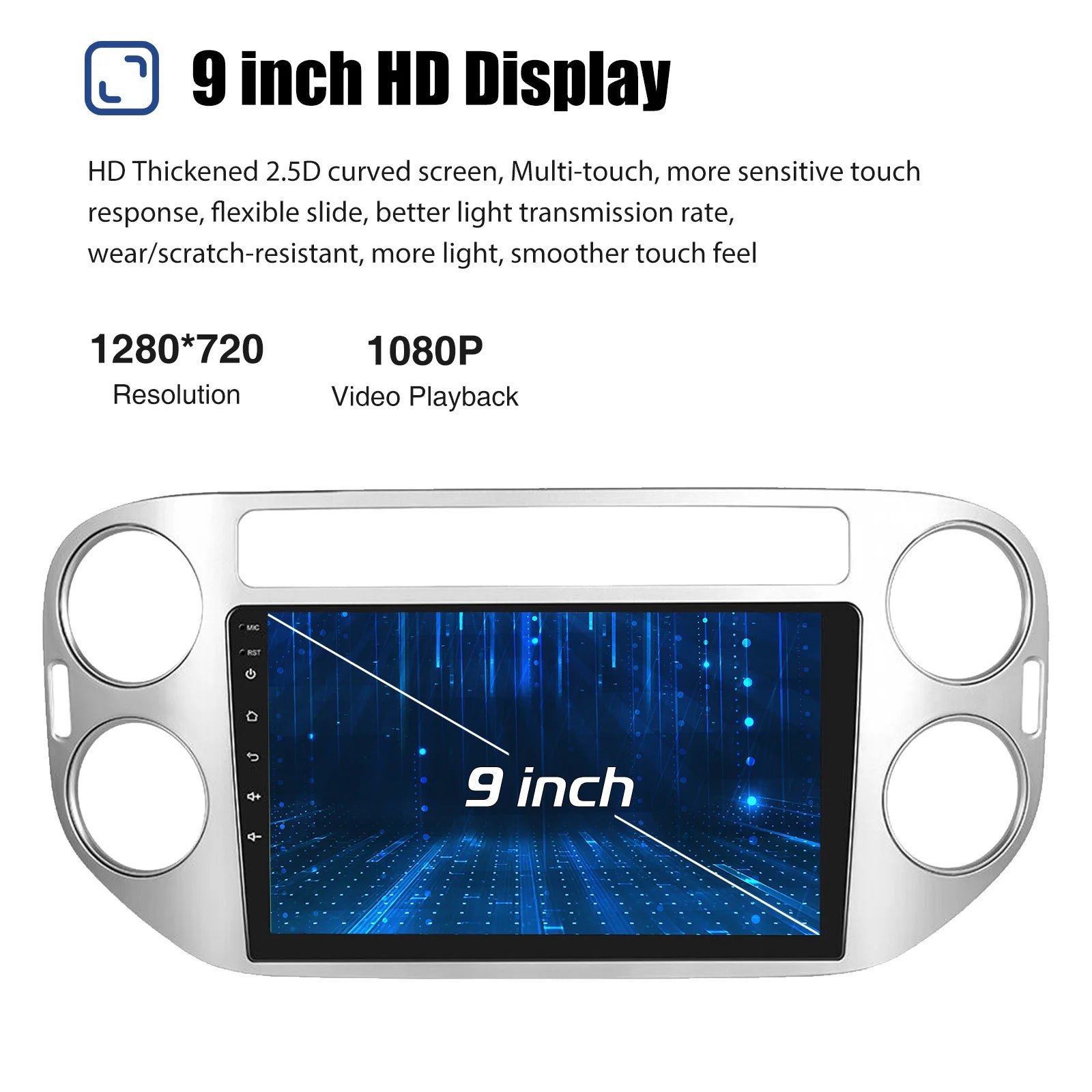 The AR9001 is tailored for VW vehicles and fits the Tiguan 5N generation (2007–2016) and Golf Plus (2004–2013). Built to integrate with Volkswagen dashboards while delivering modern infotainment.
