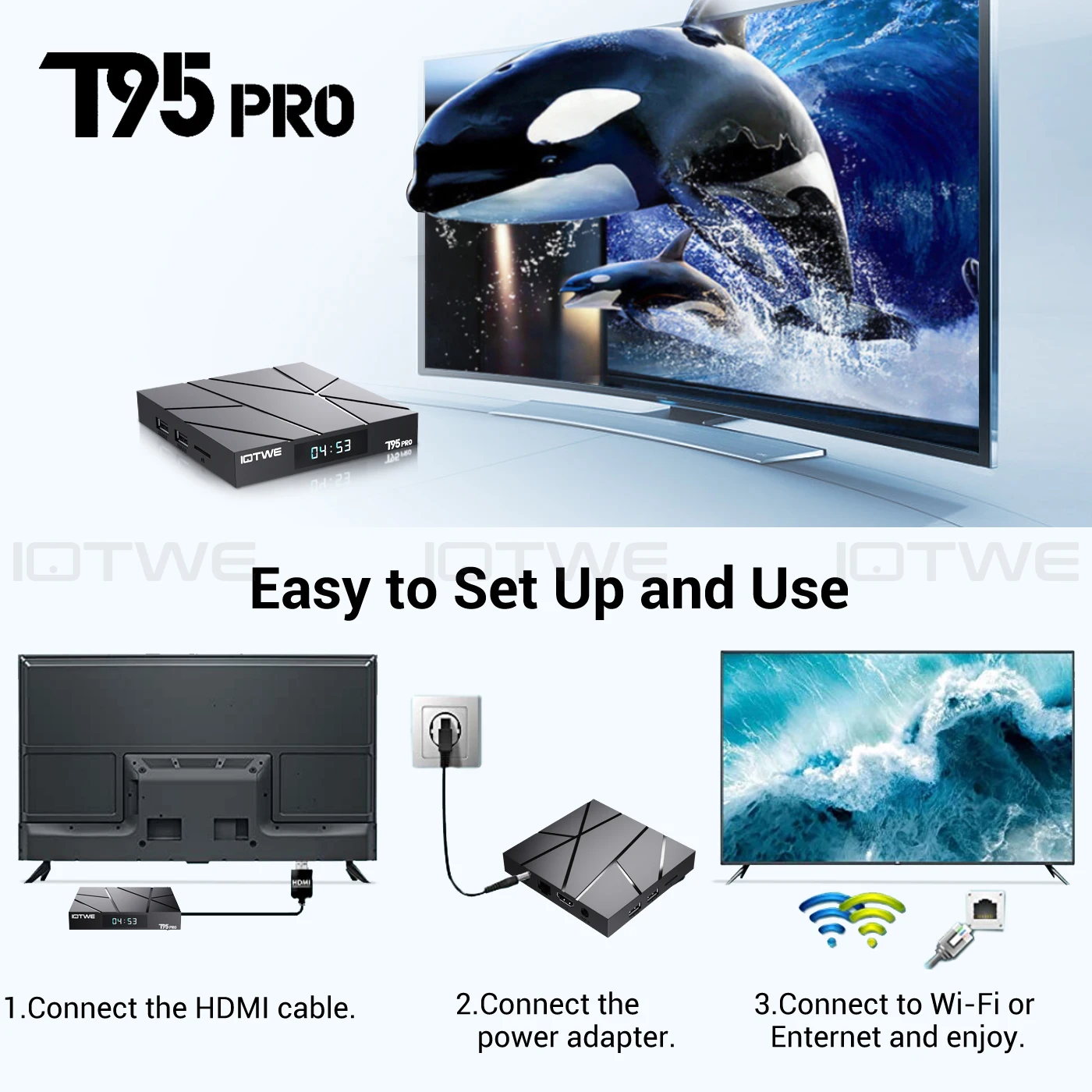 Simply connect the T95PRO to your TV with an HDMI cable, sign in to your preferred streaming apps, and start exploring a world of content. With a dedicated remote control, fast wireless connectivity, and robust media capabilities, it’s ready to deliver entertainment, news, sports, and more—right from your living room.